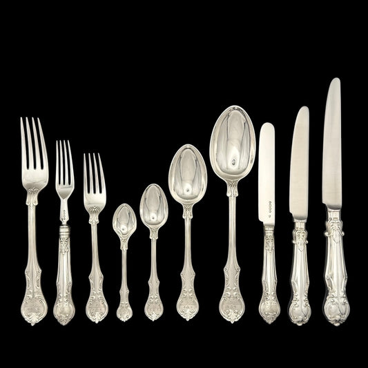 Fiddle Pattern Cutlery Set for for Twelve People with Twenty Four Dessert Forks, and a Fabulous Selection of Servers.