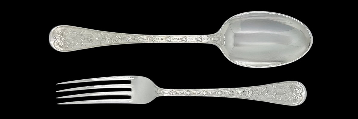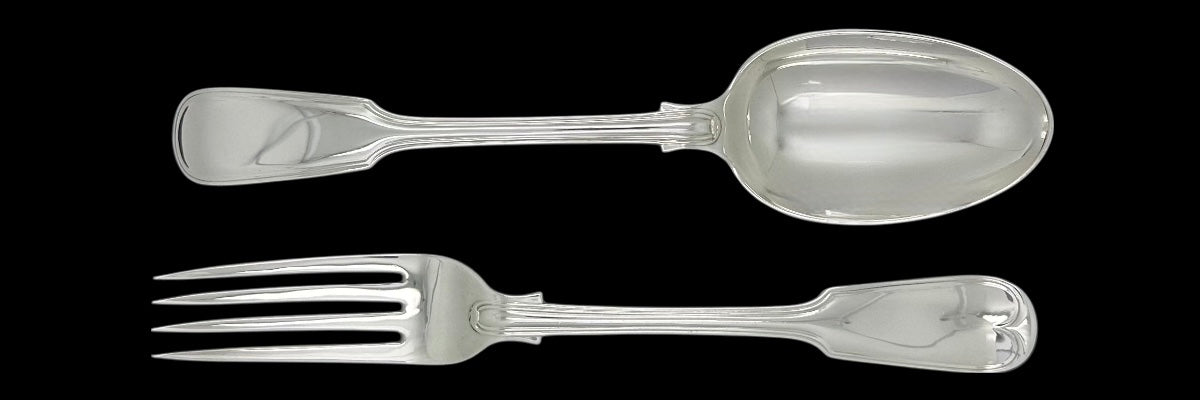 Deriving it's name from it's fiddle-shaped handle, Fiddle Pattern is one of the major designs in British Flatware. Early examples can be found from the Roman period, however it was the mid 18th Century when it first became popular in England, the design originating from France.