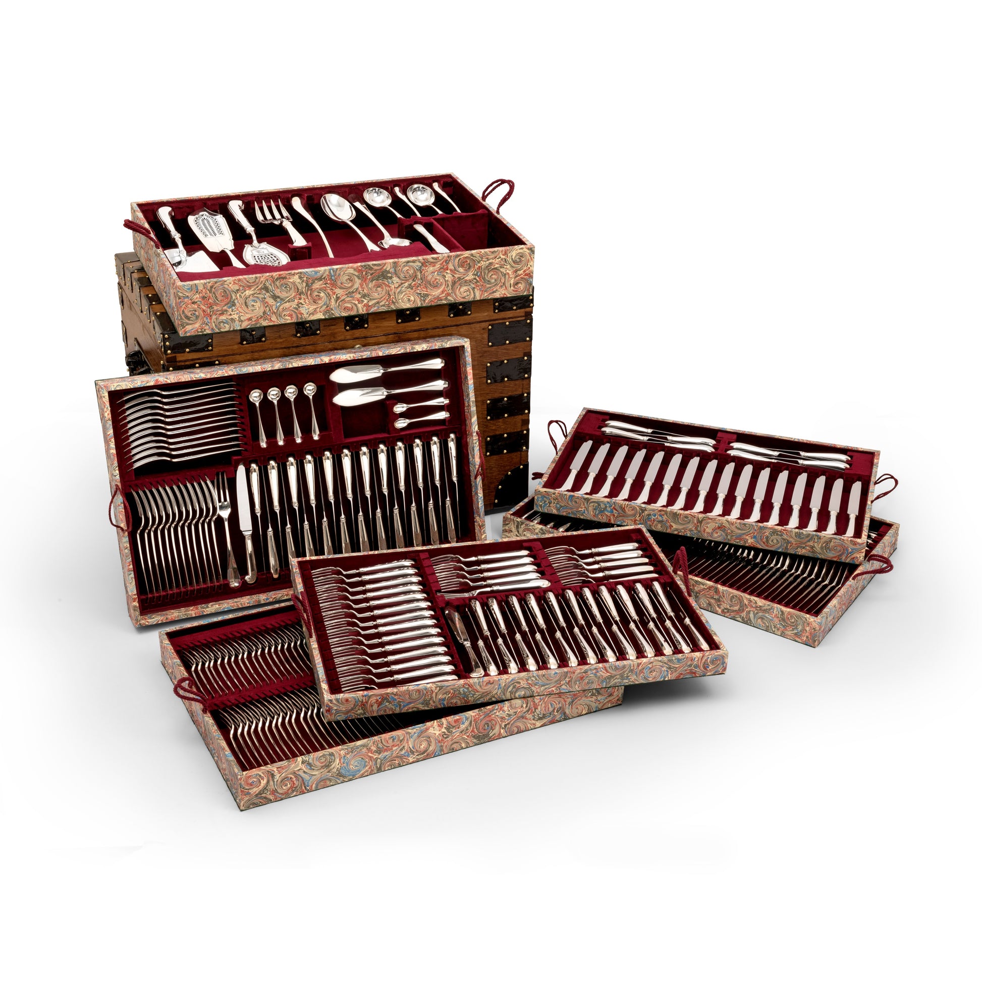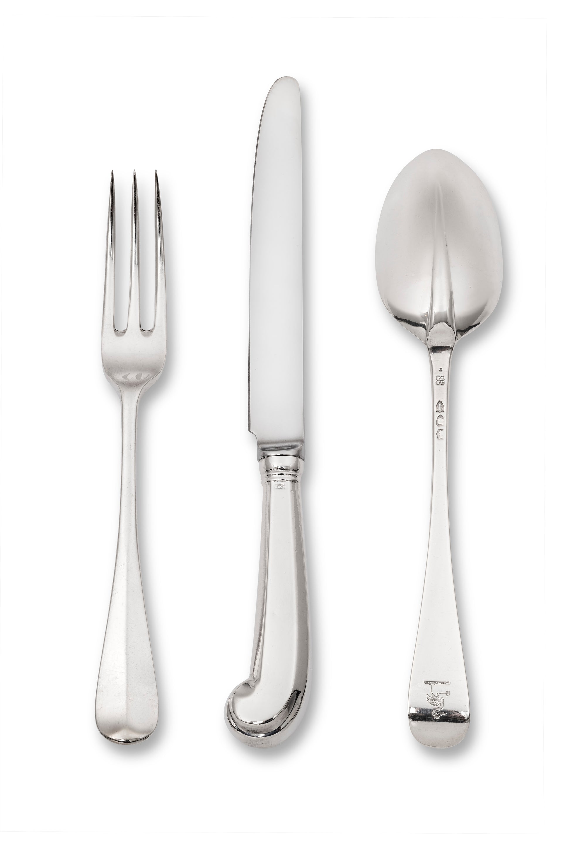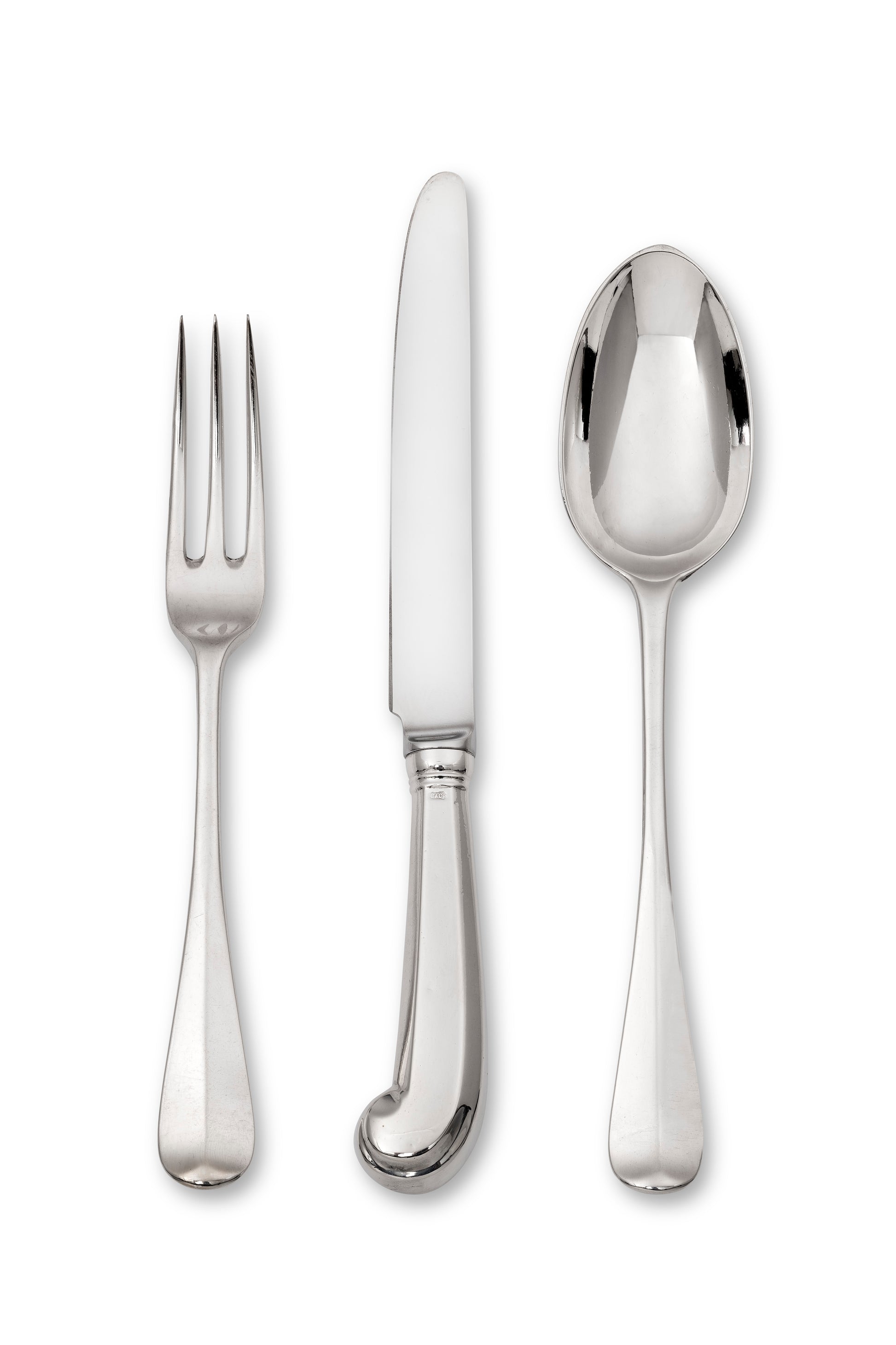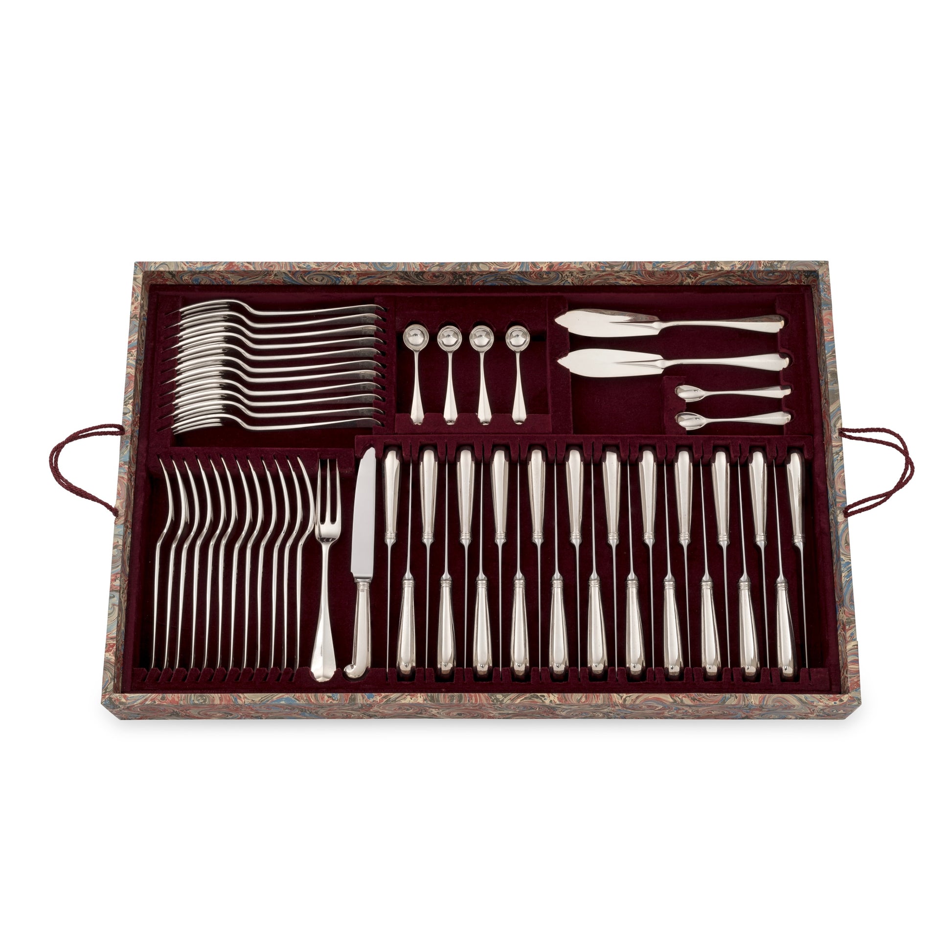Extensive Antique Silver Three Prong Rattail for Twenty Four People with Antique Pistol Handled Knives and both Fish & Entree Knives & Forks.