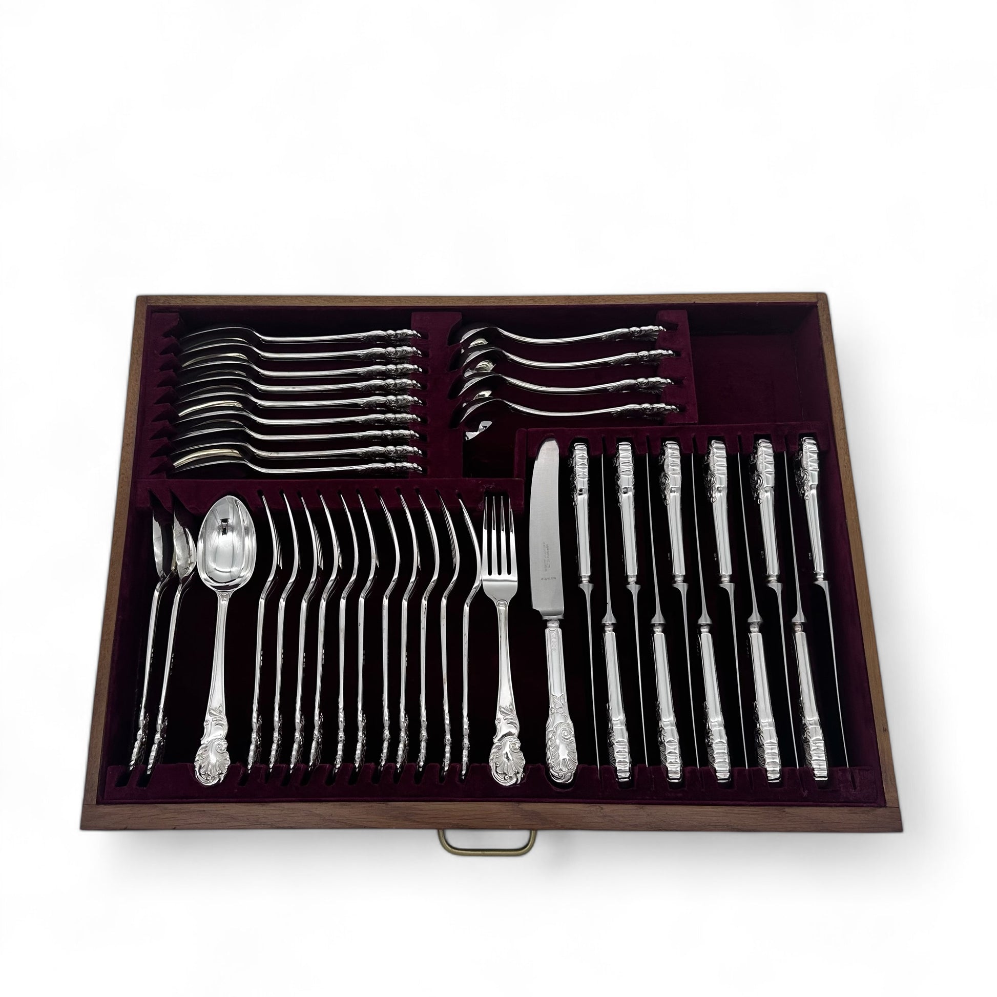 Antique Silver ‘Rococo’ Pattern Flatware Service for Twelve People with Original Table & Dessert Knives.