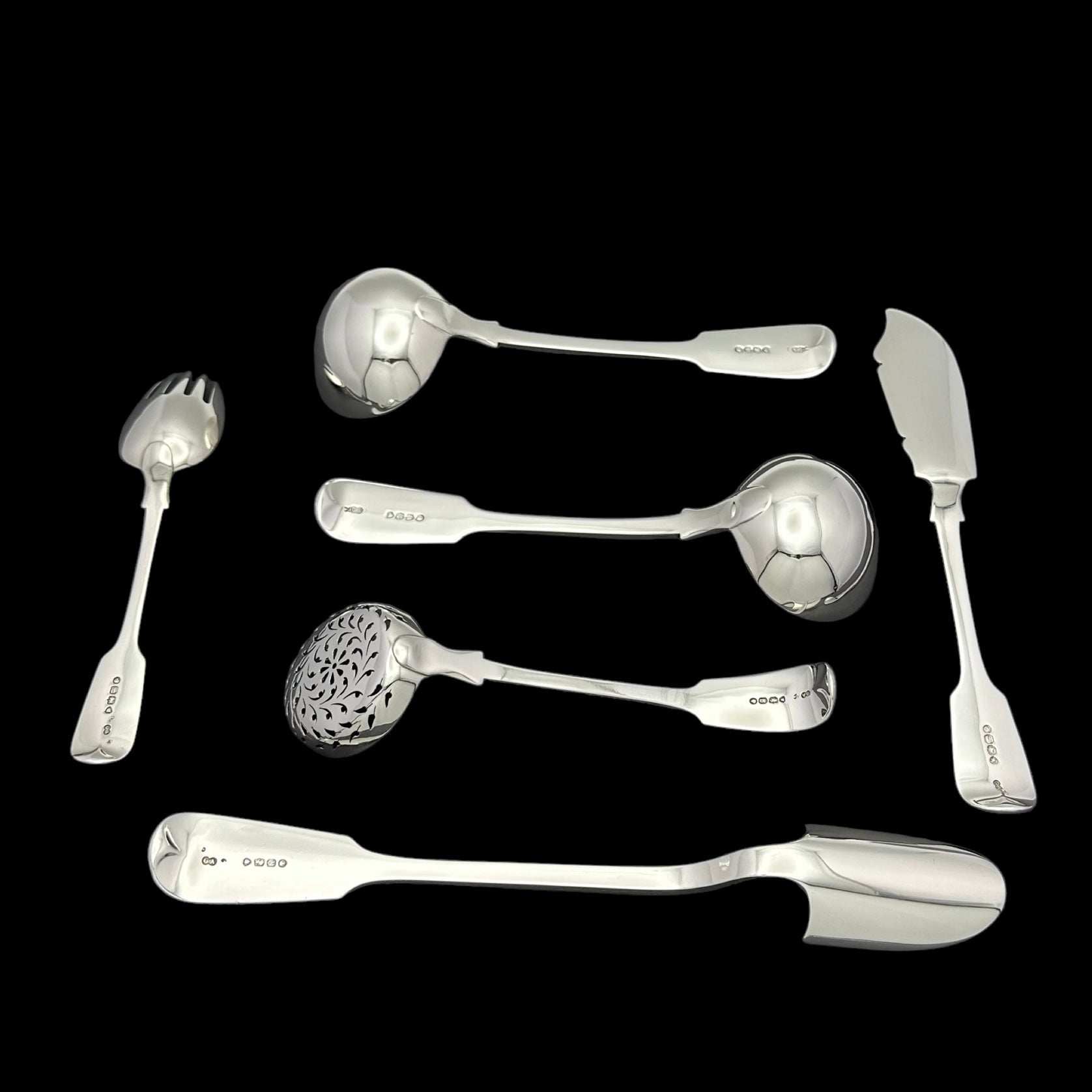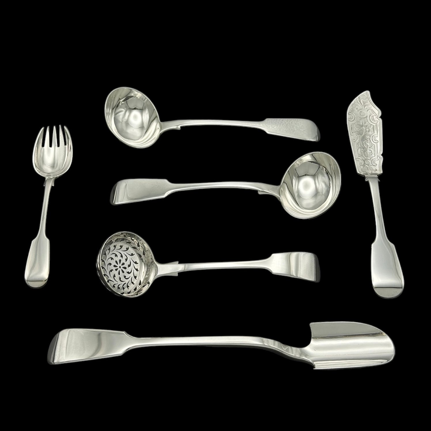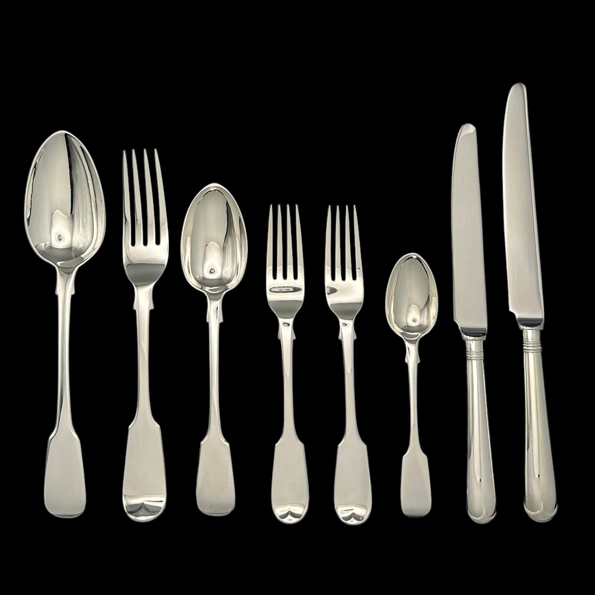 Fiddle Pattern Cutlery Set for for Twelve People with Twenty Four Dessert Forks, and a Fabulous Selection of Servers.