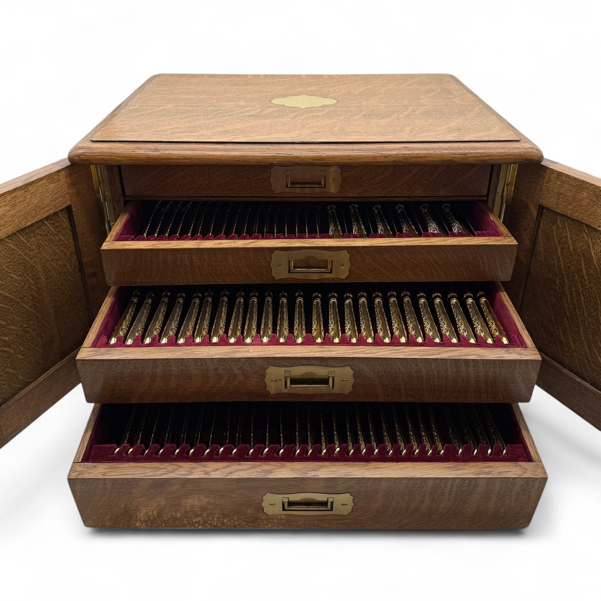 Hand Forged Silver Gilt Elizabethan for Twelve, with Twenty-four Dessert Forks, and Fish Knives & Forks By Garrard & Co. 1971